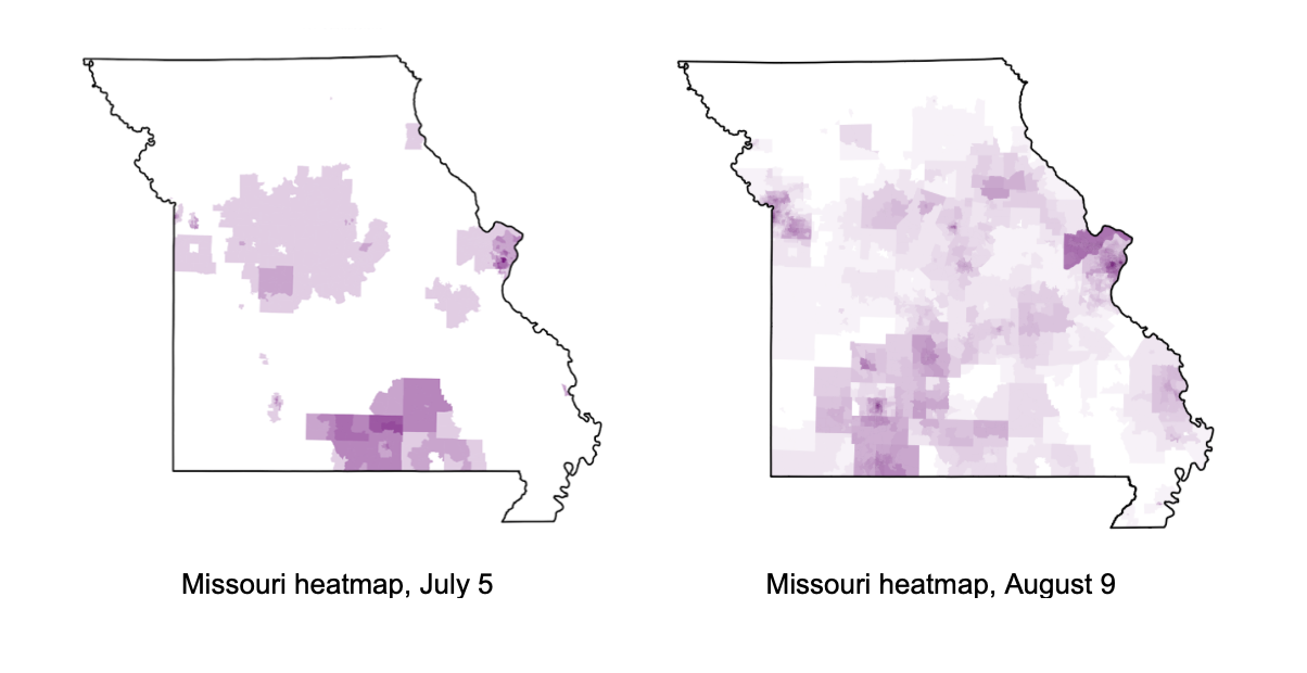 In partnership with various state organizations championing the outreach effort, MGGG launched a series of online public portals to collect COI data with Districtr in Florida, Michigan, Missouri, New Mexico, Ohio, Pennsylvania, Texas, and Wisconsin (in addition to several smaller localities). We then used clustering techniques from data science to aggregate and synthesize these in four states: Michigan, Missouri, Ohio, and Wisconsin.